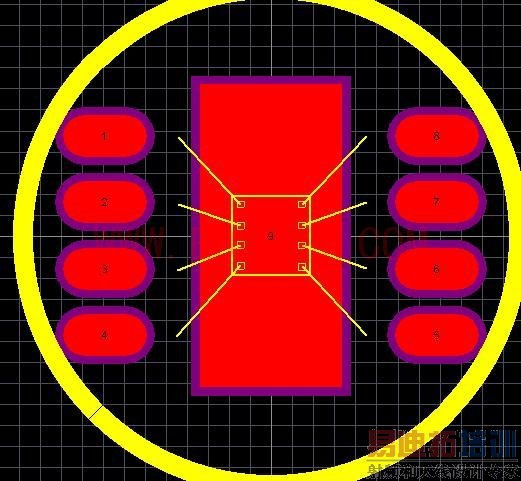一个简单的贴片元件,给它在BOT做个邦定封装已备用。(要求:既可以在TOP贴片也可以在BOT邦定,在pcb板上只用其中一种贴片或邦定)是不是一定要在中间加个 地(PAD 9 )?想不明白的是:元器件中间没有金属,加个地有用嘛?