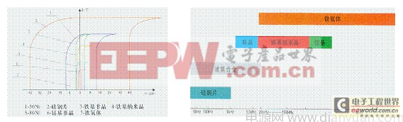 2.3图2非晶、纳米晶软磁合金材料与传统软磁材料使用频率范围比较: