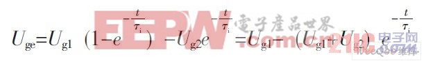 二极管D1导通时, 若Uge为所加的反向电压值(可记为-Ug2, 正向电压记为+Ug1), 集电极电流iC=0, Uce=U2。开通后, U1向Cgc、Cge充电, 此时Uge可写成: