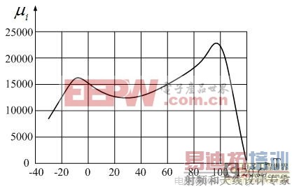 图2-53 日本TDK公司高导磁率材料H5C4系列铁芯初始导磁率μi 随温度变化的曲线图