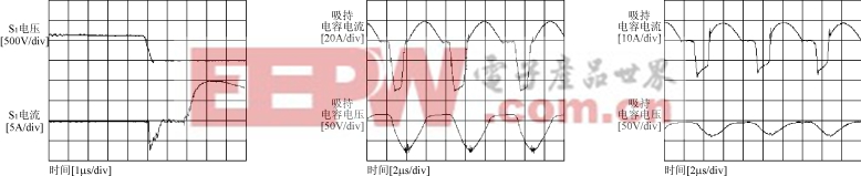 图7给出了实验波形。从图7(a)可以看出,在谐振周期内,原边电流减小到零,从而消除了原边的拖尾电流。从图7(c)可以看出,通过S4的电流在驱动脉冲下降为零之前已经减小到零,从而S4实现零电流关断。从图7(d)可以看出,在死区时间内,S1的电压减小到零,从而S1实现零电压导通。从图7(e)和(f)可以看出,在一个谐振周期内, C h在满载时完全放电,而在轻载时却没有完全放电,使得环路电流根据负载条件变化作适应性调整。