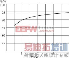 图8给出了根据原理样机得到的效率曲线。满载时效率最高,达到94%。