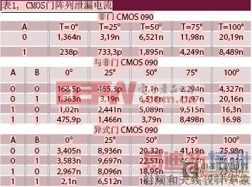 为了解标准CMOS门泄漏电流对数据的依赖性,研究人员对意法半导体公司90 nm CMOS090工艺的标准单元作了仿真。这些仿真采用了代工厂针对Spectre晶体管级仿真器所提供的模型,用五种温度来验证泄漏电流与温度的关系(表1)。如果对表中泄漏电流按升序排序,则顺序与温度的变化相同。例如,对一个双输入与非门,逻辑输入0或1在所有温度值下都产生最大的泄漏电流。这种功率分析方法能揭示出一个加密核心的输入与产生最大或最小泄漏电流之间的关联。现在有资料描述最大、最小和其它算法,用于估算泄漏电流。