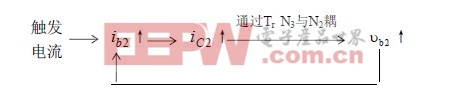 不论是用触发管DB3还是由基极偏置电阻产生基极电流iB2(后者用在基极回路中带电容的半桥逆变电路中),两种触发方式中的哪一种,在接通电源后,都会由于iB2的出现而产生VT2的集电极电流ic2,通过磁环变压器的正反馈,引起电压vBE2上升, iB2进一步增加, ic2也随之增加。出现以下的连锁反应: