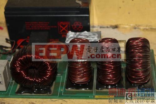 大电感,是一个5000KV的逆变器上拆下来的,买来八个,八个就有10多斤啊,真重,用了四个,多了四个,两个串联用的,一个电感量是1.4.我串联是2.8吧。不知道会不会太高,不是说越大越好吗,呵呵。