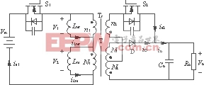 为了减小开关电源的开关损耗,提高其开关频率,软开关技术应运而生。软开关技术主要包括两种:零电压软开关(ZVS)及零电流软开关(ZCS)。在含有MOSFET开关器件的变换器拓扑中,零电压软开关要优于零电流软开关。