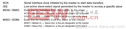 尽管表1中的引脚名称取自Motorola公司的SPI标准,但特殊集成电路的SPI端口名称通常与图1中所标示的名称有所不同。