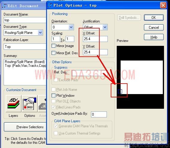 这个设计一样也没有用哦, PCB 挂上来看看. 你设置的offset 数值太小,没有在白框内.你在出Gerble 时不是会有提示调整到中间吗? 学习啦 把OFFSET设计为中心,CENTER 就不会出现以下的对话框