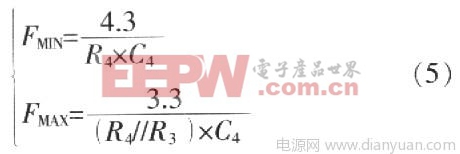 选择R3及R4合适的值就来可以确定芯片实际运行频率范围。死区由R5、C5来确定,由数据手册上给出的最小死区时间等式:tmin=O.3R5C5,因此,就能计算大体的死区时间。
