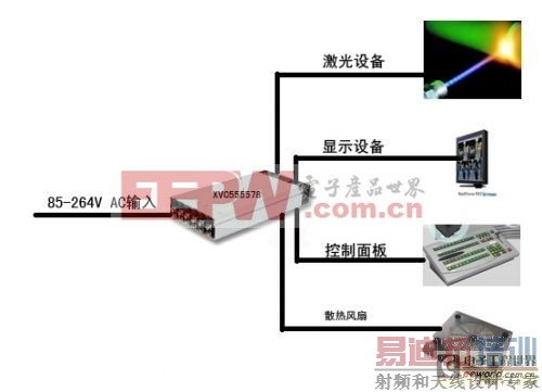 设备总功率约为1100W,满足医疗设备认证,需要四组不同直流输出,首先是大电流的48V、20A用于激光设备, 其次需要一个18V用于LCD显示器,再次需要一个5V用于控制面板,最后还需要一个12V用于系统散热风扇。这个客户找了很多品牌的产品都无法定型,因为电源系统太复杂,价格太高,占用的空间太大,最后他选择了Excelsys,在40.5mm*260mm*127mm(1U高)的封装内解决了问题。