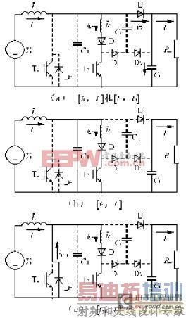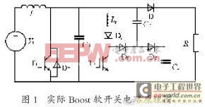 在各种单相PFC电路拓扑结构中,Boost电路具有结构简单、变换效率高、易于控制等优点而得到广泛应用。高频化方法可以有效地减小有源功率因数电路的体积、重量,从而提高电路的功率密度。但是,高频化也带来了诸多问题,其中最为引人关注的是开关损耗的急剧增大。有源功率因数校正电路的软开关技术能够有效地解决这一问题,本文将要介绍的电路就是这一类电路。