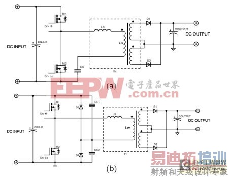 图1:半桥LLC转换器的两种不同配置:(a)单谐振电容;(b)分体谐振电容。