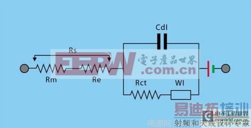 它以俗称的Randles等效电路为基础,将电化学电池表现为一个由电学元件组成的电路网,每个电学元件都与构成单个电池的一个物理因素相关。(参见图板)