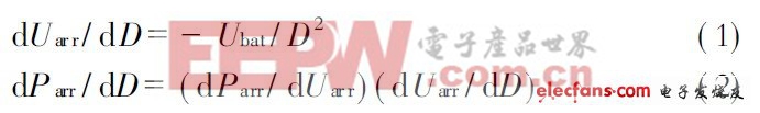 式中, Ubat 为电池两端电压; D 为占空比; Uarr 为太阳能电池两端电压。将式( 1) 代入式( 2) 可得: