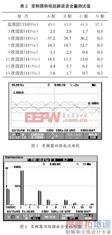 从测试的谐波数据可知,变频器产生了大量谐波,主要以5次、7 次、11 次谐波居多。