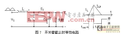 当电感电流的峰值增加到与该时刻输入电压大小相对应的某一数值ILP时,APFC控制器便输出低电平的开关信号,使开关管VT1截止,电流iL停止上升。考虑到电流是直线上升的,有
