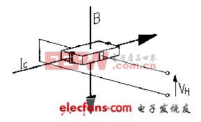 在这两个边缘之间产生的霍尔电压VH与控制电流IC和磁通量B直接成正比(图1)。霍尔发生器由一片薄传导材料制成,如镓砷化物(GaAs),这种材料在使用期间能够实现可靠稳定的性能。在5 mA的控制电流下,获得的霍尔电压约为1.25 mV/mT。