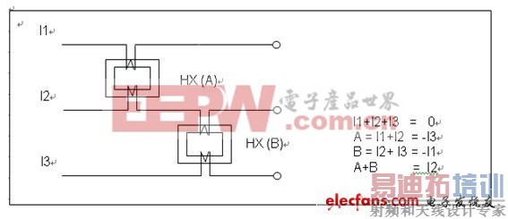 专用版HX传感器有两个一次线圈,这两个线圈既可以串联,也可以并联(图5)。在某些逆电器应用中,可以使用一对这样的传感器,测量所有三个相位,每个传感器两个相位(图6)。这消除了对第三个单元的需要,有助于降低成本。AC测试电压(50 Hz, 1分钟)是3 kVRMS,间隙/漏电距离超过5.5mm,使这些传感器特别适合中低功率范围中的隔离电流测量。