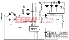 美国动力公司PI(Power Integrations)研制的单片开关器件TOPSwitch-GX,有效地把高压功率MOSFET器件、PWM控制、故障保护和其它控制电路集成到单片CMOS上,还集成了很多内置的及用户可配置的功能[2]。我们采用了TOPSwitch-GX系列中的TOP249来实现切割电源的高频引弧电路,结构简单紧凑,控制方便,能够有效地抑制电磁干扰,引弧高效稳定,效果很好。
