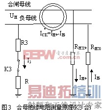 两组方程式联立,ICH1、ICH2、I31、I32可直接从电路中测出,因此可解出合闸母线对地绝缘电阻为:
