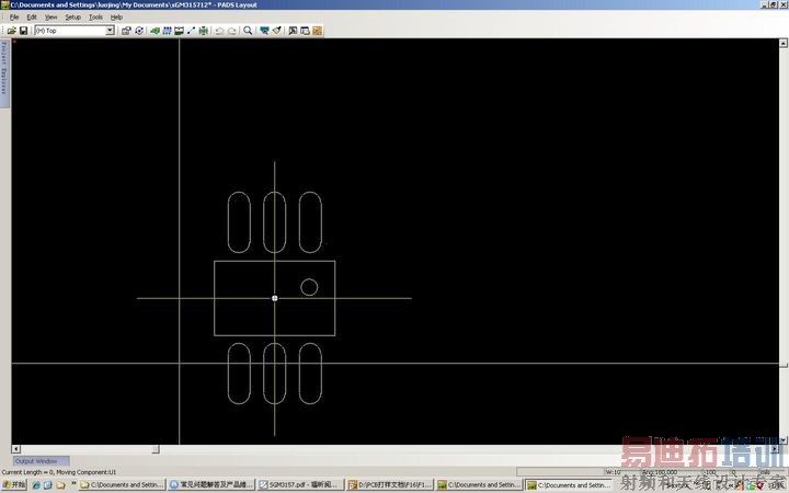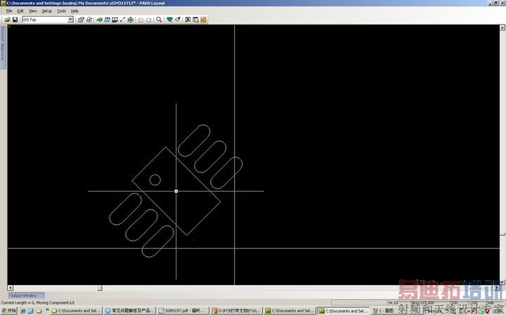 是在PADS LAYOUT中,调入一元件,不知怎样操作的,元件突然变成附图中状态,此时移动鼠标,元件会按原点以45度角旋转。等取消后,此现象再也出不来了,不知有没有朋友遇到过。