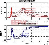 改变时的阻抗角和输出电压随开关频率变化图。综合图6、9、10,可以看出,虽然低谐振点和高谐振点都可能得到较大的功率输出,但在低谐振点附近,输出电压随着频率变化的曲线非常陡,说明输出电压对频率的变化非常敏感。频率稍微偏离低谐振点,输出电压就会变化很多。