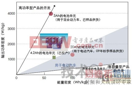 东芝开发了负极材料采用钛酸锂(LTO),安全性和寿命都很出色的锂离子充电电池(图5)。该公司2009年秋季开始样品供货可用于电动汽车、能量密度提高至100Wh/kg的电池单元。虽然细节未公布,但据悉正极材料从以前的钴酸锂改为可实现更高容量的材料。电池容量为20Ah。并且,该公司还在开发能量密度为150Wh/kg左右的电池单元,并力争在2011年之前实用化。