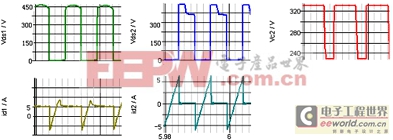 从上面的仿真波形可以看出,主开关管、辅助开关管和二极管上的电压都没有超过500v,同时,当二极管关断时,其上电压变化不是很大,不会产生振荡。进一步的实验可以证明,这种新型的有源箝位变换器在很宽的负载范围内都可以取得很高的效率。