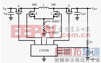 图 1:采用 LTC3789 的四开关降压-升压型转换器