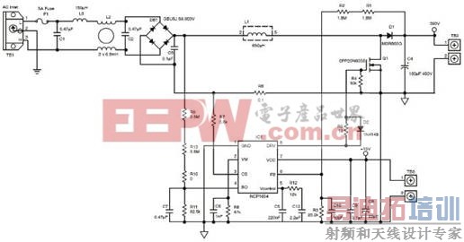 图2 NCP1654应用电路:300W 65kHz功率因素修正电路