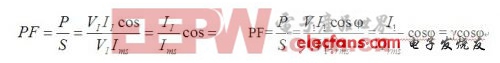 传统的功率因数概念是假定输入电流无谐波电流(即I1=Irms或γ=1)的条件下得到的,这样功率因数的定义就变成了PF=cosφ。