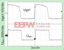 图7给出了满载时驱动波形和变压器原边电流波形。