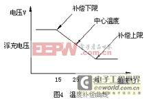 DF0210A电源监控单元可根据环境温度对蓄电池的浮充电压进行温度补偿,使蓄电池在各种温度环境下都能保持满容状态,补偿曲线如图4所示: