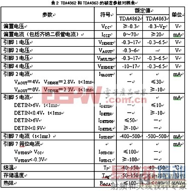 为便于比较,现将TDA4862和TDA4863的额定参数列于表2。