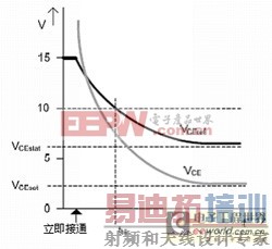 为了保护IGBT在短路等情况下发生过载,副边的每个输出部分都有一个集成的实时饱和电压监测功能。该监测功在一定的消隐时间(tbl,它可由外部电路来控制时间的长短)后对IGBT的集电极-发射极电压和外部可调的参考电压(VCEstat)进行对比,如果集电极-发射极电压超过了参考电压,则该路输出立刻被关断,并且短路电路直接将故障信号传动到原边驱动核心电路的故障存储区域,在此处故障被记录,然后所有的输出被迅即关断。为了阻止电路在短路的情况下再开通,传递后续开通信号的信号电路通道被互锁,直到有复位脉冲对该电路进行复位。在IGBT退饱和监视中,必须考虑它的实时饱和电压特征。在IGBT开通的最初几个微秒,集电极-发射极电压远高于稳定后的VCEsat值。因此监测电路的响应特征在消隐时间内(图4)必须与VCEsat特征图一致。
