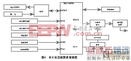 制器主要有单片机、键盘接口电路、液晶显示接口电路、数据存储器、同步电压检测电路,电压电流和频率检测电流,还有触发电路等部分组成。采用80C196KB单片机作为系统的控制核心,6264ROM存在系统的数据和程序,8279作为键盘显示接口电路,连接了6位液晶显示和7只按键,实现人机对话。在单片机HSO.5发出相应的触发脉冲信号,实现无功自动补偿。控制器硬件的原理见图4。