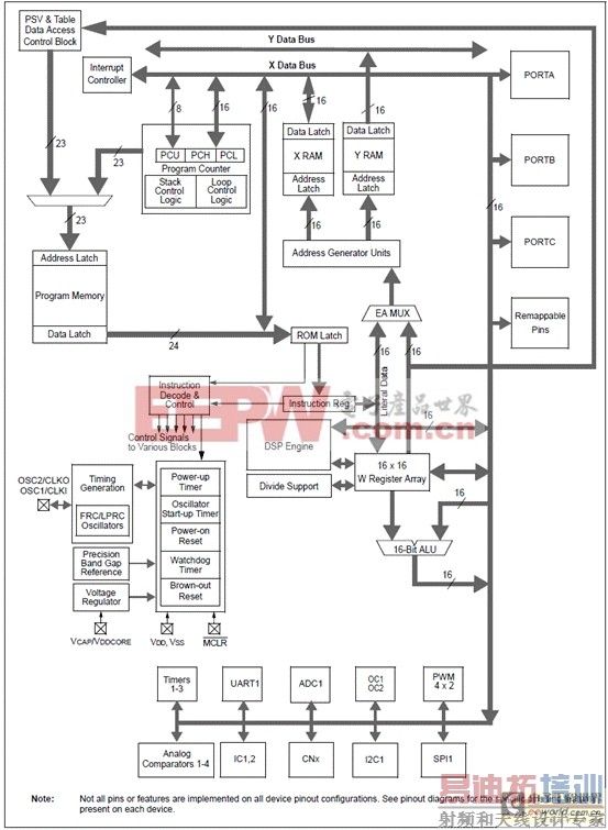 图2.dsPIC33FJx6GS系列CPU核方框图