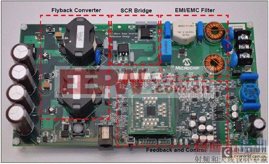 图9.连接电网的太阳能微逆变器参考设计板外形图