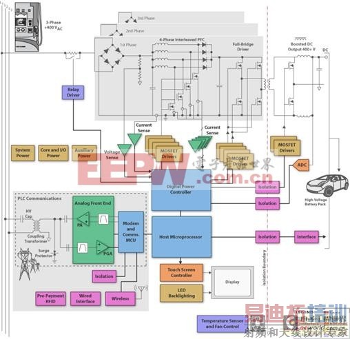 TI公司的Level 3电动/混合动力汽车电池充电器采用数字功率控制器,通信器件,高性能驱动器以及接口器件. Level 3充电器包括从AC产生DC电压的带PFC的AC/DC转换器,DC/DC转换器,其核心器件是实时C2000系列MCU.本文介绍了EV/HEV充电器方框图以及EV/HEV充电器主控制器Stellaris LM3S2000 32位MCU主要特性,方框图, 开发板主要特性和方框图,电路图和PCB元件布局图.