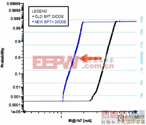 为确保在T j=150℃时能可靠工作,引入了一种基于偏置环概念[3]的新型终端设计。这里环的互连是通过一个半绝缘层来实现的,正如剖面图2所示。同基于结终端扩展概念的以往产品相比较,已证明,这种终端设计在能提供更窄的漏电流分布的同时,不受内部环间距变化和界面态的影响。已获得一个非常好的耐压能力和反向漏电典型值,这将确保器件在1700V、温度高达165℃、R th=1.2kV时稳定工作。
