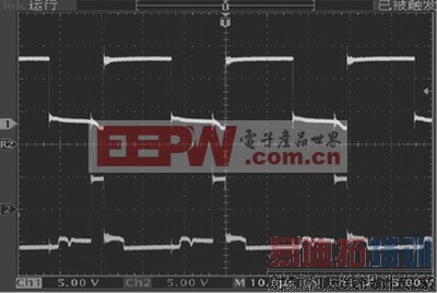 根据图2电路,笔者进行了仿真与实验,其结果分别如图3(a)、(b)所示。图中上、下方分别是主、辅助开关栅极的驱动信号波形,脉冲的前后沿陡峭,其上升和下降时间以及传输延迟均达到指标要求。