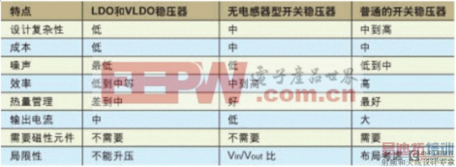 线性稳压器与开关稳压器的比较可从下表清楚看到。