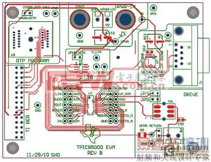 图10.评估板PGA450-Q1 EVM PCB布局图:顶层