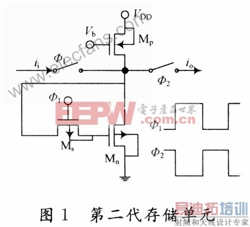 时钟馈通误差是一个复杂的物理现象,在这里以第二代开关电流存储单元为例进行分析。