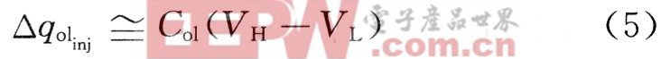 其中:aq表示沟道电荷注入存储电容的分配系数,典型值为:aq=1/2。由栅极扩散覆盖电容Co1,注入存储电容的电荷为: