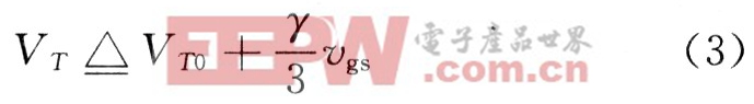 式中:2 "φF|是强反型层表面势垒;r是体阈值参数;VT0是Vgs=0时的阈值电压。