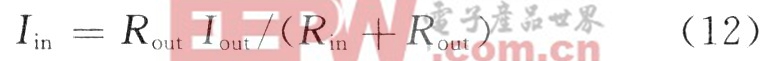 从图3可以看出,上一级电路的输出电阻与下一级电路的输入电阻并联。设上一级电路的输出电流为Iout,输出电阻为Rout,下一级电路的输入电流为Iin,输入电阻为Rin。,则下一级电路的输入电流为: