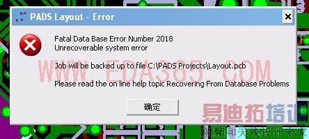 你好,出现此问题,请用ROUTER打开PCB文件,删除报错地方的少量走线,保存,就OK,但是要尽早处理,暂时没有更好的方法了。