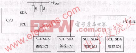 在I2C总线系统中,CPU是核心,I2C总线由CPU电路引出,其他被控对象均挂接在I2C总线上,I2C总线系统电路结构示意图如图1所示。