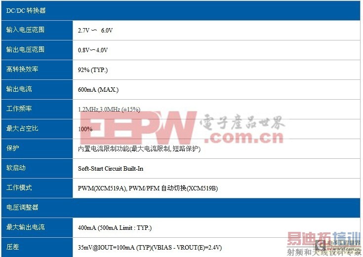 XCM519系列是在1个封装组件中搭载了同步整流降压DC/DC转换器和对应低输入电压调整器的实装IC。工作电压为2.7V~6.0V。内置时钟振荡器为1.2MHz,3.0MHz,可配合应用目的进行选择。工作模式可以选择为PWM控制, 或者PWM/PFM自动转换控制。